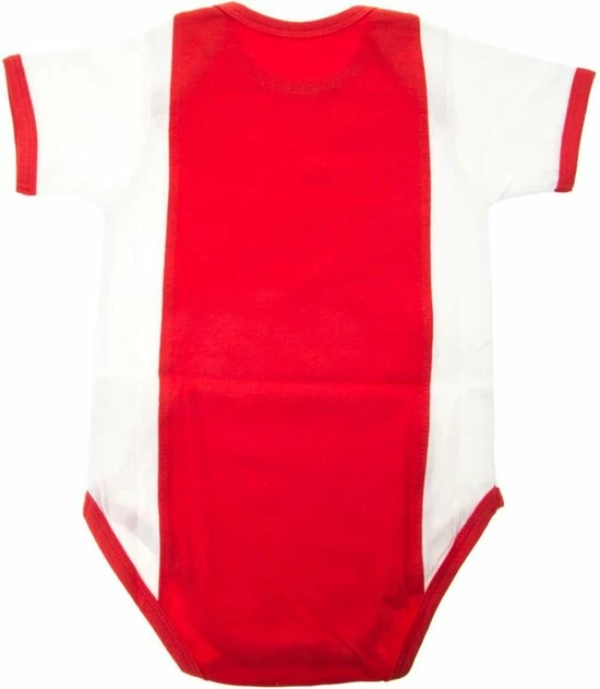Dit rompertje heeft korte mouwen en de bekende Ajax-kleuren. Op de voorkant staat het logo van de voetbalclub en van de sponsor. De onderkant is voorzien van drukknoopjes. Met dit rompertje ziet jouw baby er meteen uit als een echte Ajax-supporter.