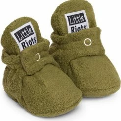 Little Riots – Babyslofjes – Antislip – Fleece Stepper – Olijf Groen – Slofjes Voor Je Baby, Dreumes En Peuter Voor Jongens En Meisjes – 12-18 Maanden (13cm) – Schoenmaat 20-21