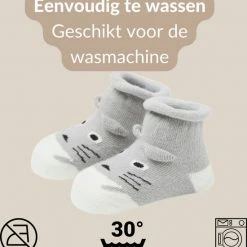 Merkloos Babysokken – Poesje – Katoen – Antislip – 0-12 Maanden – Babysokjes – Baby Slofjes – Kraamcadeau – Baby Cadeau