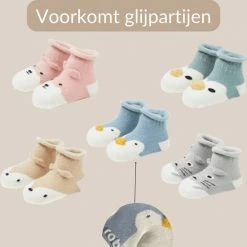 Merkloos Set Van 5 Babysokken – Beestenbende – Katoen – Antislip – 0-12 Maanden – Babysokjes – Baby Slofjes – Kraamcadeau – Baby Cadeau – Geschenkdoos