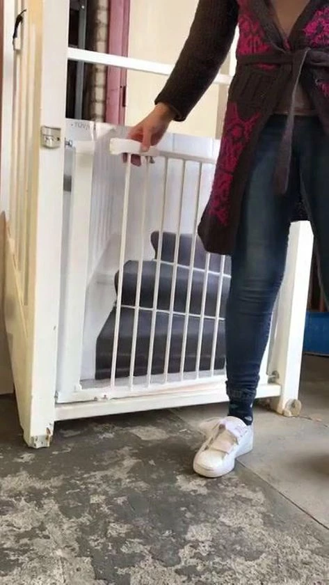 VERNIEUWDE EENVOUDIGER HANDVAT: Wat we ook gedaan hebben is een totaal vernieuwde handel. Ook geschikt voor links -of rechtshandige ouders. Boven op de handel (dus niet aan de zijkant) zit een schuifje. Schuif met je duim dat grendeltje naar achteren en je kunt het deurtje een beetje liften. Het hekje is open.