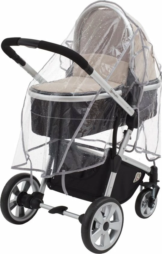 Je kindje kan heerlijk droog in de kinderwagen zitten dankzij de universele regenhoes van Babygo! De transparante regenhoes is universeel en past op de meeste kinderwagens. Je bevestigt de hoes makkelijk aan de poten van de kinderwagen.