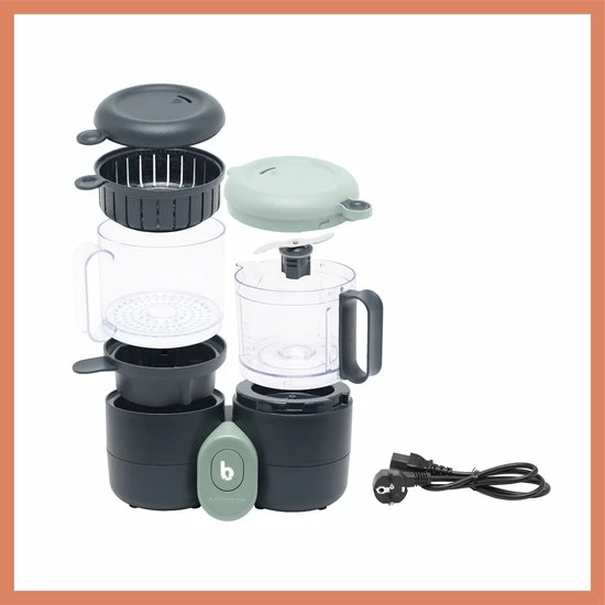 De foodprocessor van Babymoov wordt geleverd inclusief handig stoommandje en heeft 3 waterniveaus; 100, 200 en 300 ml, afhankelijk van hoeveel voedsel je gaat bereiden. Na gebruik zijn alle onderdelen behalve de elektrische delen gemakkelijk te reinigen in de vaatwasser! Hij werkt met een adapter, deze wordt natuurlijk meegeleverd.
