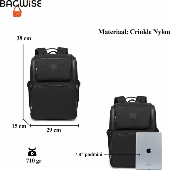 Handen vrij! Deze Luiertas Rugzak van Bagwise kun je comfortabel op je rug meedragen