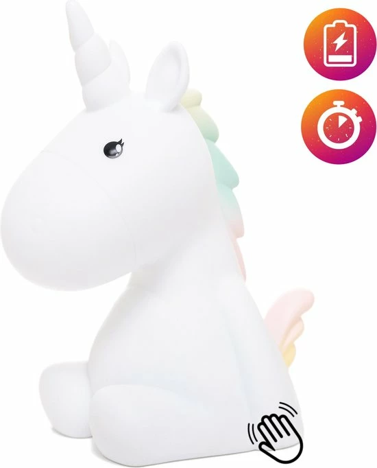 Het eenhoorn nachtlampje is de perfecte oplossing om uw kind ‘s avonds in slaap te laten vallen. Het nachtlampje cre?ert een kalmerende atmosfeer waarin kinderen, peuters en baby’s zich veilig en comfortabel voelen. De nachtlamp is een leuke toevoeging aan de kinderkamer of babykamer.
