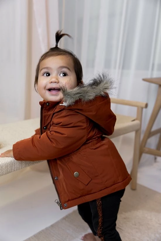 Kom maar op met die winter! Deze Dirkje meisjes winterjas houdt je ukkie lekker warm! De parka is gemaakt in de mooie kleur Arabian spice. De jas is voorzien van een afritsbare capuchon met een fake fur rand en heeft klepzakjes. Je sluit de winterjas met een rits met extra drukknopen.