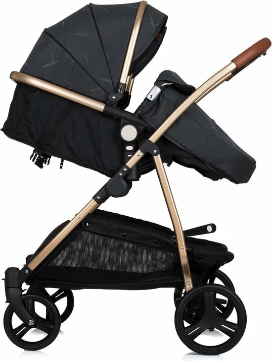 Duo Kinderwagen Chipolino Duo Smart zwart, bezit een praktische en royale korf aan de onderkant van de duo wandelwagen.