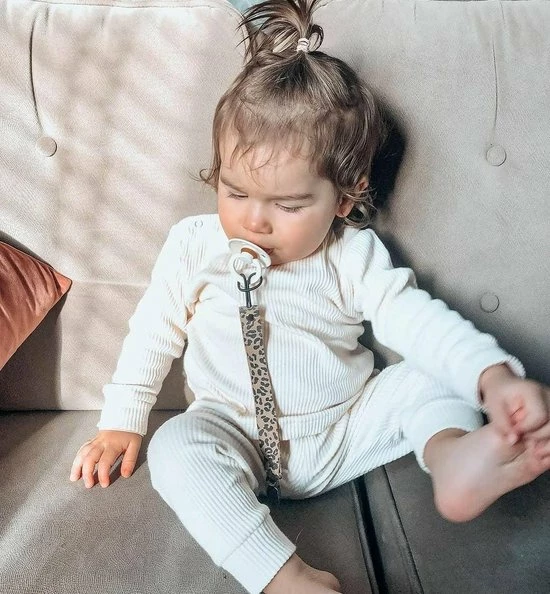 Ideaal als kraamcadeau! Zeg nou zelf hoe lief staat dit luipaard print speenkoord.
