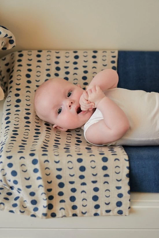Met deze groot formaat hydrofiele doek heb je een multifunctionele doek in huis en de trendy maanprint geeft het een persoonlijk tintje. Deze multidoek wordt ook wel een swaddle genoemd. Je kunt het gebruiken als inbakerdoek zodat je pasgeboren baby zich veilig en geborgen voelt tijdens het slapen. Ook ideaal als handdoek, want het kleinere formaat hydrofiel doek is vaak net te klein om je baby goed mee af te dekken na het badje. De multidoek sla je gemakkelijk om je baby heen zodra je het uit het badje haalt. Daarmee voorkom je dat je baby koud wordt. Tegelijkertijd neemt het hydrofiele katoen veel vocht op wat het afdrogen van je baby versnelt en je baby warm houdt. De doek is ook handig om je baby op te verschonen, op het aankleedkussen of op de bank.