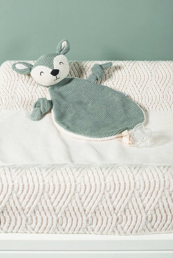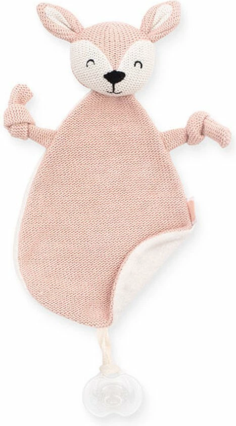 Het cuddledoekje heeft een lief hertengezichtje en is van zacht materiaal waar je kindje heerlijk mee kan kroelen en knuffelen. De voorkant en achterkant van het doekje zijn van verschillend van stof en structuur. Dat is interessant studiemateriaal voor jouw baby. Je knoopt het doekje dankzij het lusje gemakkelijk vast aan het speentje.