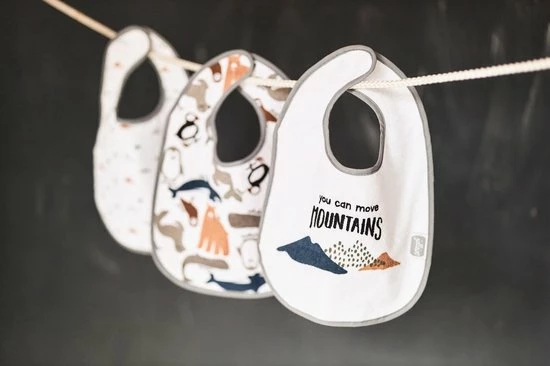 Drie makkelijk wasbare slabben in één pakket. Dat is handig voor de kliedermomenten aan tafel. Bescherm de kleertjes van jouw baby of dreumes met deze slab. En is de slab vies of net in de was? Geen probleem. Met drie slabben in één pakket heb je zo weer een nieuwe om bij je kind.
