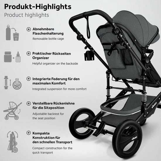 De KIDUKU? 3 in 1 kinderwagen is een goed ontworpen en ergonomische buggy.