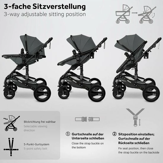 3 in 1 kinderwagen / reiswieg, sportstoel (buggy) en babyzitje