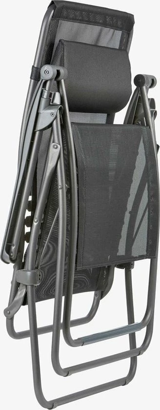 – Bevestiging: de metalen buizen en het doek worden verbonden door clips van elastomeer. Door dit gepatenteerde systeem van Lafuma geniet de gebruiker van een steviger comfort, bijzonder stevige ondersteuning van de rug, eenvoudige bevestiging/vervanging van het doek en is duurzaamheid verzekerd.