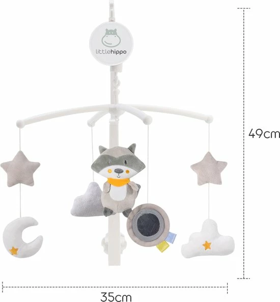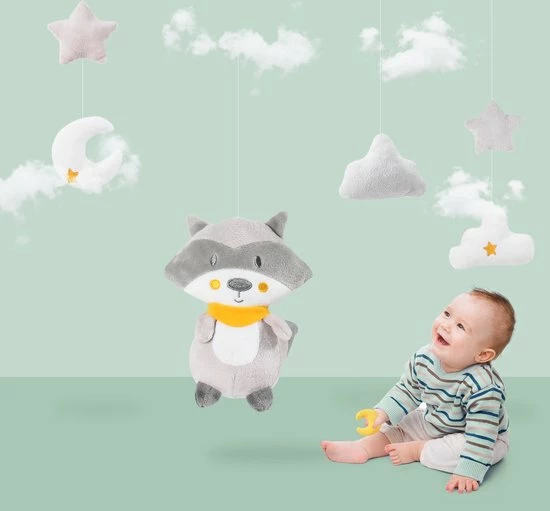 De muziekmobiel werkt rustgevend voor baby?s dankzij het lieve slaapliedje. Baby?s kijken graag naar de beweging van deze speeltjes, wat hun visuele en motorische ontwikkeling stimuleert. Het een kwestie van tijd voordat kindjes naar de vrolijke speeltjes van de boxmobiel zullen proberen te grijpen.