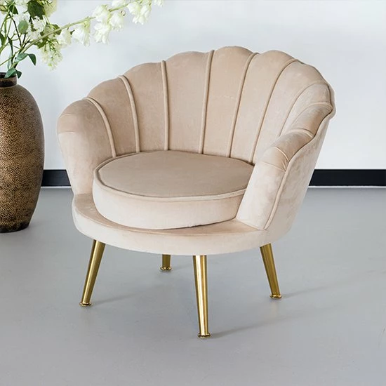 - Kleur: Goud glanzend frame, zandkleurigezitting