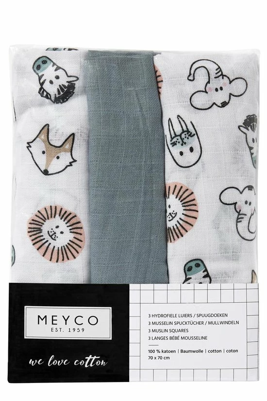 Als er iets onmisbaar is bij de verzorging van jouw baby, dreumes of zelfs peuter is het wel een hydrofiele luier. Met deze set Meyco Baby Hydrofiele Luiers 3-pack Animal, bedrukt met diverse vrolijke diertjes, heb je er gelijk drie in één. Deze veelzijdige doeken, gemaakt van 100% katoen, zijn dé uitkomst als handdoek na het badje. Het hydrofiele katoen droogt snel en neemt vocht goed op, waardoor je je kleintje zelfs bij de kleinste plooitjes goed droog kan deppen. De stof voelt erg zacht aan en dat is precies wat tere babyhuidjes nodig hebben.