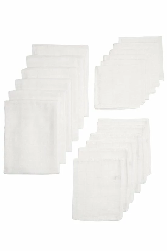 Katoenen doekjes van 30×30 cm. Praktisch om een boertje op te vangen na het eten of drinken.