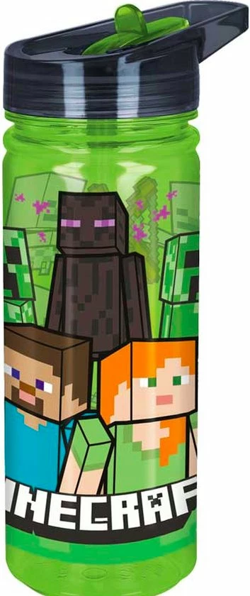 Deze drinkfles is super handig om mee te nemen. Er kan voldoende drinken, zodat je geen dorst krijgt. De tuit is uit te klappen, zodat je gemakkelijk kunt drinken. De fles heeft een leuke print van Minecraft.
