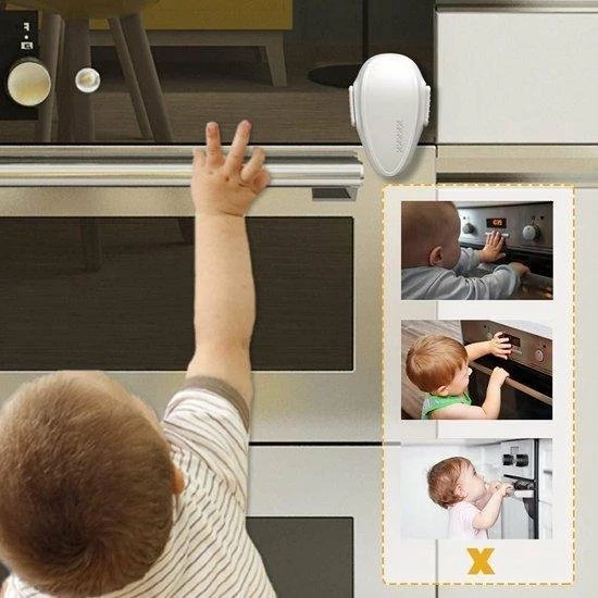 Het oven slot houdt de deur van je oven dicht voor ontdekkende babyhandjes. U kan het slot ook gebruiken voor de vaatwasmachine, droger of andere apparatuur. Het slot wordt met hittebestendige tape geleverd.