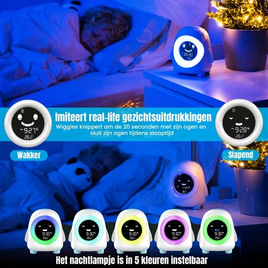 Soms vinden kinderen het lastig om het ritme van dag en nacht goed in te schatten. Ze worden wakker en denken dat het tijd is om op te staan, terwijl ze eigenlijk nog een paar uurtjes langer in bed zouden moeten liggen. Ze bedoelen het natuurlijk goed, maar toch zou het lekker zijn om je kinderen aan te leren hoe laat zij de kamer mogen binnenstormen. Wiggles is ontworpen om uw kindje het gevoel van tijdsbesef te ontwikkelen. Hierdoor levert deze schattige pinguin een belangrijke bijdrage aan een goede nachtrust voor zowel ouders als kind. Dat maakt Wiggles de ideale vriend van elk gezin.