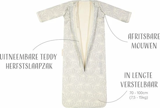 De speciale pasvorm en zachte materialen stellen je kindje gerust en bevorderen het doorslapen. Door de 4 seizoenen functionaliteit heb je voor ieder seizoen de juiste temperatuur slaapzak bij de hand.