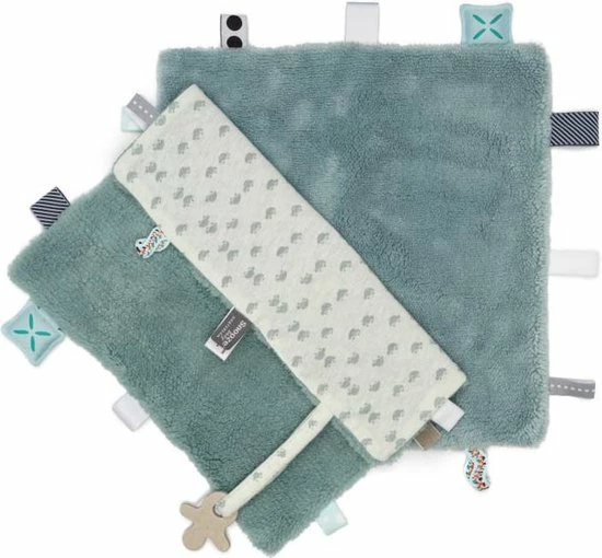 Het labeldoekje van Snoozebaby, inmiddels alom bekend als de Sweet Dreaming (25 cm x 25 cm) omdat als babietjes met dit doekje vol verschillende ultra-zachte labeltjes knuffelen, kroelen of spelen ze rustig en blij worden. De twaalf labels van dit labeldoekje geven geheid speel en droom plezier.