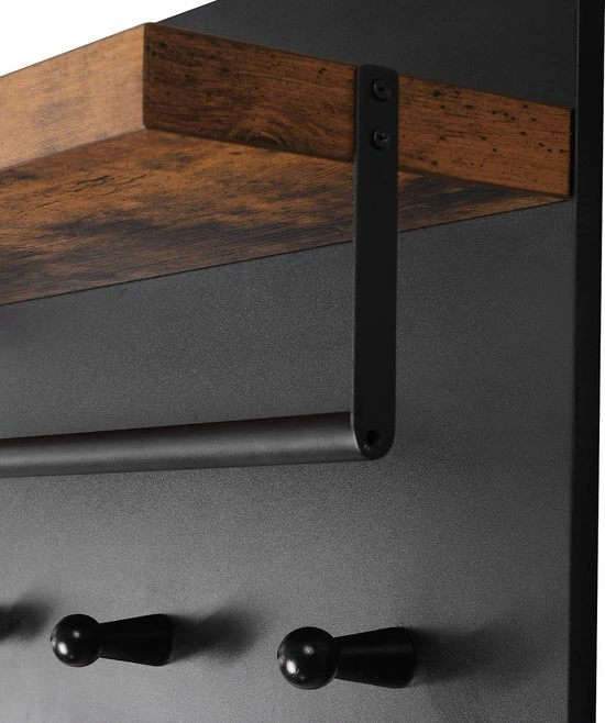 Dit wandkapstokpaneel is verkrijgbaar in 3 verschillende stijlen, waardoor je de keuzes hebt die je nodig hebt om je ideale entree te creëren. Kies uit een bruin paneel en zwarte plank voor een rustieke uitstraling, een zwart paneel en bruine plank voor een moderne look, of een geheel witte kapstok voor een minimalistisch design.