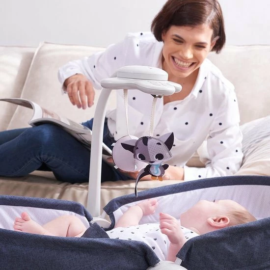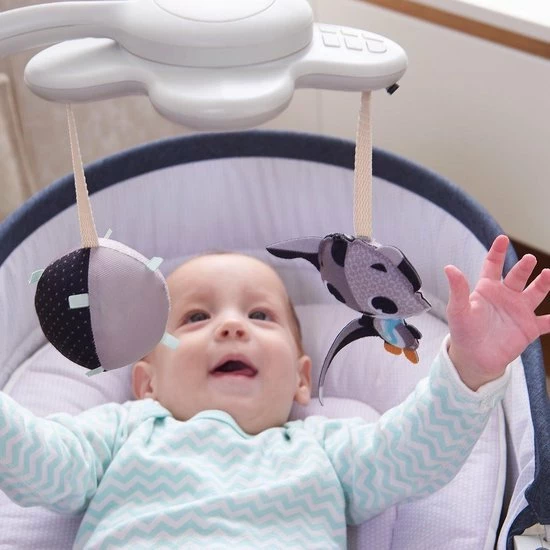 - Kalmeert baby’s met een gezellige omgeving en kalmerende schommelende vibraties.