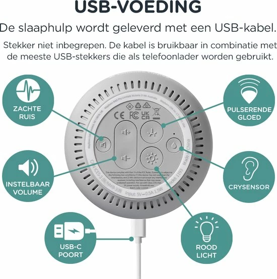 - Pulserende gloed: de ritmische pulsen van zacht licht bootsen de langzame, diepe ademtochten van de ontspannen ademhaling van de baby na, wat de baby kalmeert en helpt in slaap te vallen