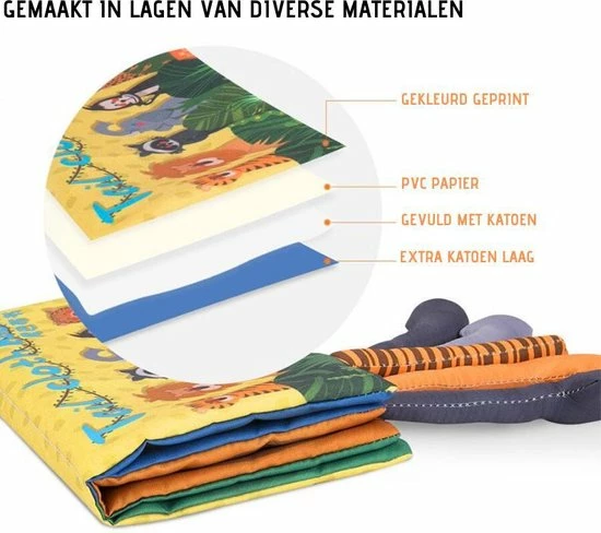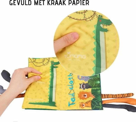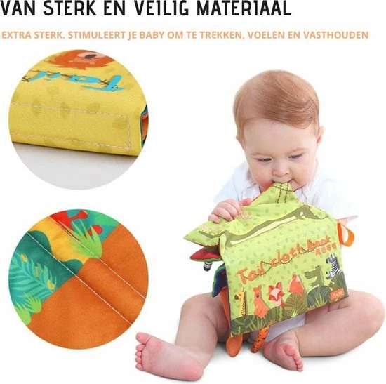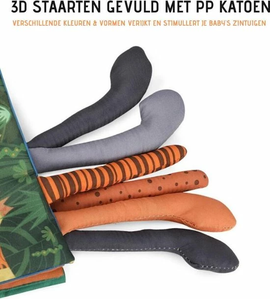 Het dierenstaart boekje laat je kind op plezierige wijze kennismaken met verschillende dieren. Aan de zijkant van dit boekje zitten staarten van dieren en de bladzijdes zijn gemaakt van krakend materiaal. Dit is voor baby’s niet alleen interessant, maar stimuleert daarnaast hun zintuigen. Kinderen leren de patronen en kenmerken van dieren kennen zoals de tijger, de olifant en de zebra. Door dit boekje samen met je kind door te nemen, verhoog je de interactie en draag je bij aan de taalontwikkeling van je kind. Ook leren kinderen om te luisteren en zich te concentreren.