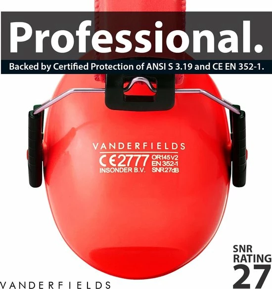 Sommige brands zijn niet, of niet volledig, gecertificeerd. Vanderfields is gecertificeerd volgens de CE EN352-1 richlijnen met een SNR van 27dB. Daarnaast voldoen we aan de Amerikaanse ANSI S3.19 Richtlijnen met een NRR van 20dB.
