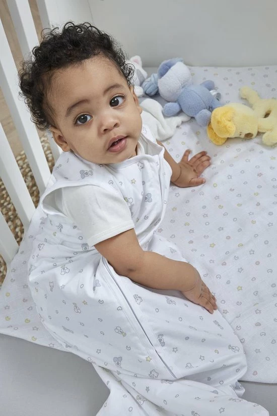 De zomerslaapzak zonder mouwen van zacht katoen is ideaal voor de zomer. De stof van 100% katoen is fijn ademend en zorgt ervoor dat je baby op temperatuur blijft, maar het zomers niet te warm krijgt. De zomerslaapzak is voorzien van de vriendjes: Baby Woezel, Baby Pip en Baby Buurpoes.