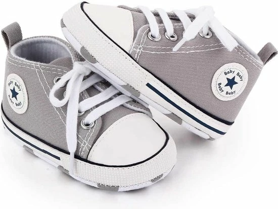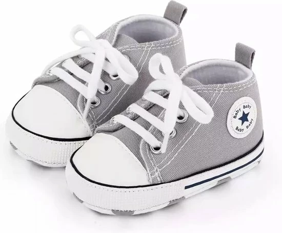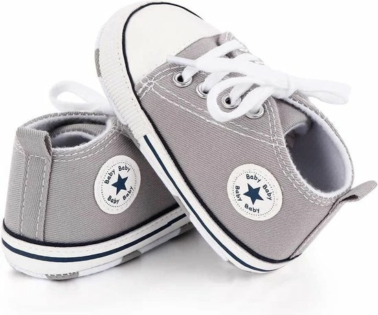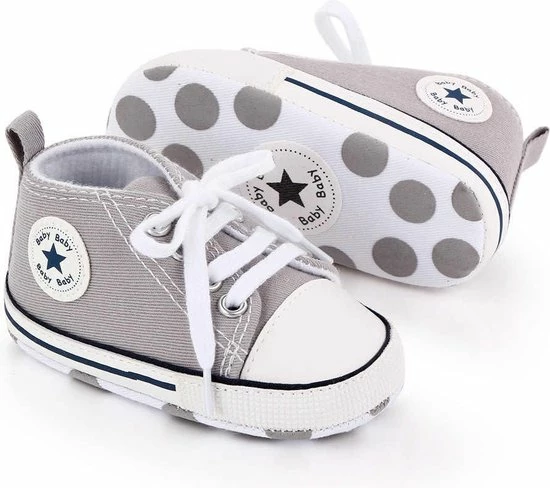 Leuke schattige en stoere baby schoenen.Het is een stevig canvas/textiel baby schoentje met een echte vetersluiting en een zachte zool. Op het zooltje zitten antislip nopjes. Speciaal ontworpen voor baby’s eerste stapjes.